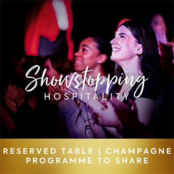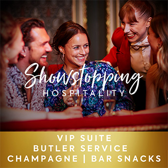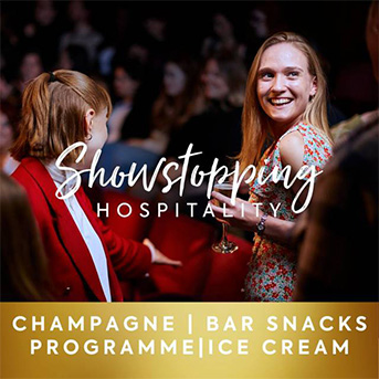 T&C’s Pre-show and interval drinks include a bottle of Champagne, or alternatives to the same value, per person. Alcohol can only be served to and consumed by persons aged 18 years and over. Please ask a member of staff for details about any food allergens. See website for full terms and conditions. Please drink responsibly.
